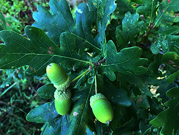Die Fruchtreife der allseits bekannten Eicheln erfolgt im September und Oktober, die Verbreitung übernehmen Vögel und Eichhörnchen. Die Eicheln hängen an langen Stielen, was der Baumart ihren Namen gab.