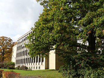 Auf dem schmalen Grundstück zwischen Travemünder Allee und Eschenburgstraße mit seinen randlich stehenden Eichen wurde in den 1950er Jahren ein markant geschwungenes Gebäude errichtet. Die zu Ehren von Ludwig Jahn im 19. Jh. gepflanzten Stieleichen wurden nicht gefällt, da sie zu dem Zeitpunkt schon unter Schutz standen.