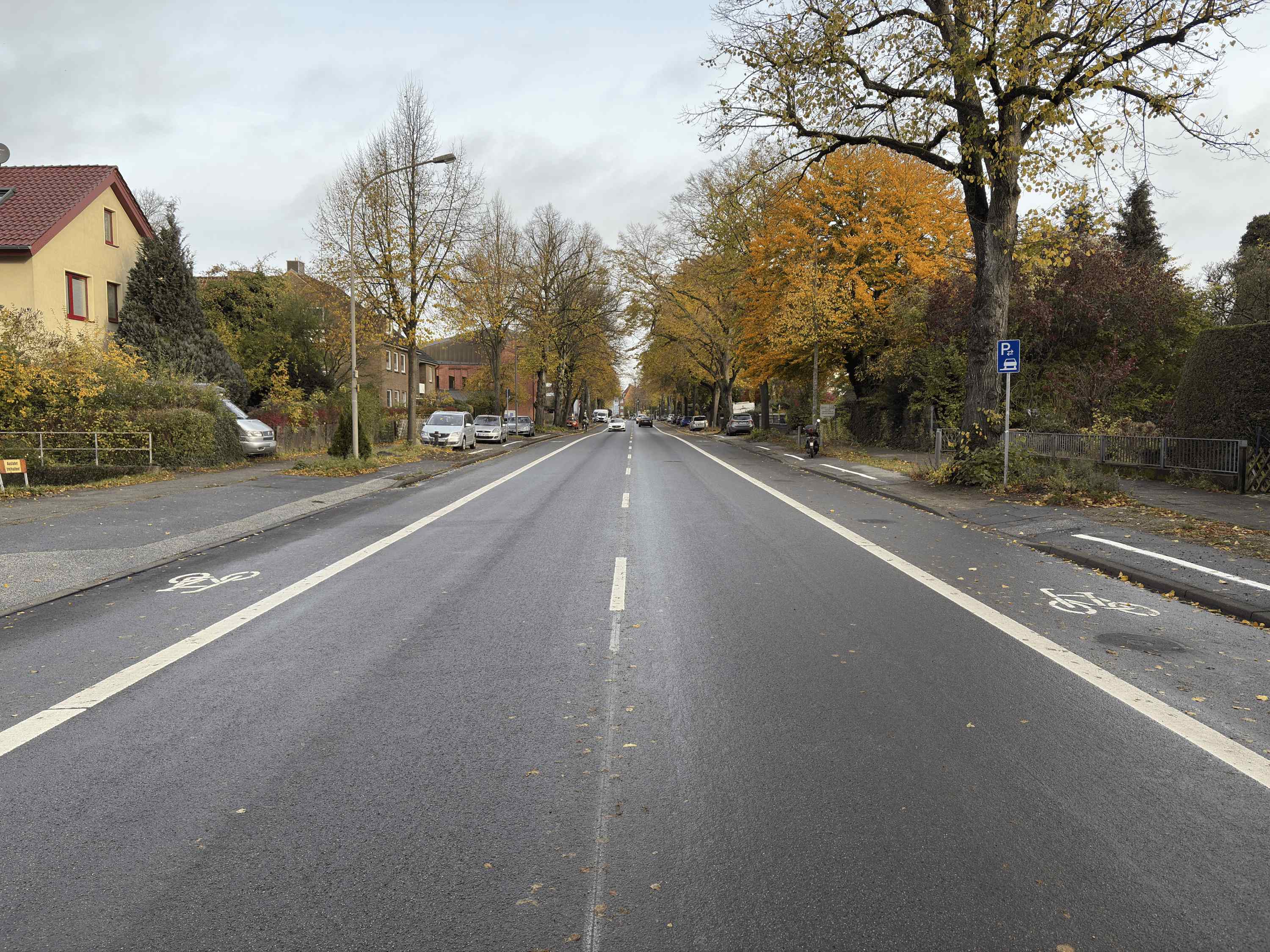 Die Fahrbahndecke ist zwischen Walderseestraße und Hövelnstraße auf einer Länge von ca. 340 m frisch saniert. Auf den ehemaligen Radwegen sind sogenannte Sicherheitstrennstreifen markiert worden, hinter denen die Kfz parken. Damit wird ausreichend Abstand zu den Radfahrenden beim Türöffnen eingehalten. Dooring-Unfälle durch das Türöffnen werden so vermieden. Geparkt werden dürfen Kfz zwischen den Bäumen. 38 Parkplätze der ehemals 50 Parkplätze bleiben erhalten. Zum Schutz der Bäume sind zusätzlich Poller eingebaut worden. Außerdem wurde der Asphalt an den Bäumen ausgebaut, um durch diese Entsiegelung den Lebensraum der Bäume und die Aufnahme des Regenwassers zu verbessern. Durch den Wegfall von zwei Fahrspuren kann nicht nur der Radverkehr sicherer geführt werden, damit ist außerdem eine Lärmminderung für die Anwohner:innen verbunden.