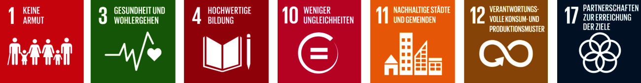 Das Projekt „Social Smart City“ zahlt somit insbesondere auf folgende der 17 Ziele für nachhaltige Entwicklung (SDGs) der Agenda 2030 ein: