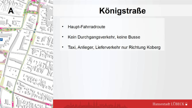 Die Königstraße sollte weitestgehend autofrei bleiben und Radfahrer sollten auch in Gegenrichtung fahren dürfen, da die kopfsteingepflasterten Rippenstraßen keine Alternative sind
