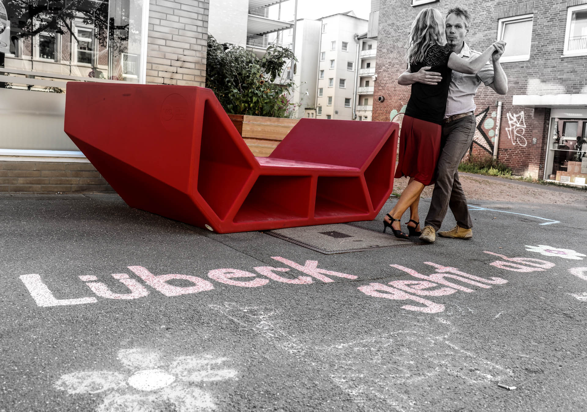 Unter dem Motto „Lübeck geht los!“ startete dann im Mai 2020 der Verkehrsversuch. Verkehrserhebungen zeigen, dass sich die Verkehrsstärke tatsächlich halbiert hat: etwa 3.000 Kraftfahrzeuge pro Tag sind weiterhin zufahrtsberechtigt. Die Geschwindigkeitsbeschränkung trägt mit dazu bei, dass das Verkehrsgeschehen inzwischen als wesentlich entspannter wahrgenommen wird als früher. Es gelang eine temporäre Steigerung der Aufenthaltsqualität, so dass sich der Anteil an Passant:innen und Radfahrer:innen sichtlich erhöhte. Bereits nach kurzer Zeit konnten Aneignungsprozesse in der Beckergrube beobachtet werden: Gastronomische Betriebe erweiterten ihre Außenbereiche, eine Initiative organisierte ein Urban Gardening-Projekt und auf einer Multifunktionsfläche finden Tanzabende und kleinere Veranstaltungen statt. In zwei Infocontainer mit einer wechselnden Ausstellung wird den Bürger:innen und Besucher:innen der Stadt alles erklärt. Eine von Studierenden der TH Lübeck durchgeführte Interviewserie deckte die kritische Auseinandersetzung mit der Herangehensweise auf. Die Resonanz auf den Verkehrsversuch wurde als sehr positiv wahrgenommen.
