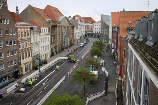 Aufgabe war es, den Durchgangsverkehr in der Innenstadt zu unterbinden und zu beobachten, wie sich diese Maßnahme in den angrenzenden Straßen und rund um die Altstadtinsel auswirkt. Im März 2020 begannen die sechswöchigen Baumaßnahmen. Die Fahrbahn wurde verengt, zwei Bushaltestellen verlegt und barrierefrei hergestellt sowie 19 Parkplätze umgenutzt. Mit temporären Angeboten wie Fahrradmodule, mobile Baumstandorte und Sitzbänke sollten die zurückgewonnenen Flächen zum Verweilen einladen. Es wurden ein verkehrsberuhigter Geschäftsbereich mit Tempo 20 ausgewiesen und die Durchfahrt nur noch dem ÖPNV, dem Anlieferverkehr und den Anlieger:innen gewährt.