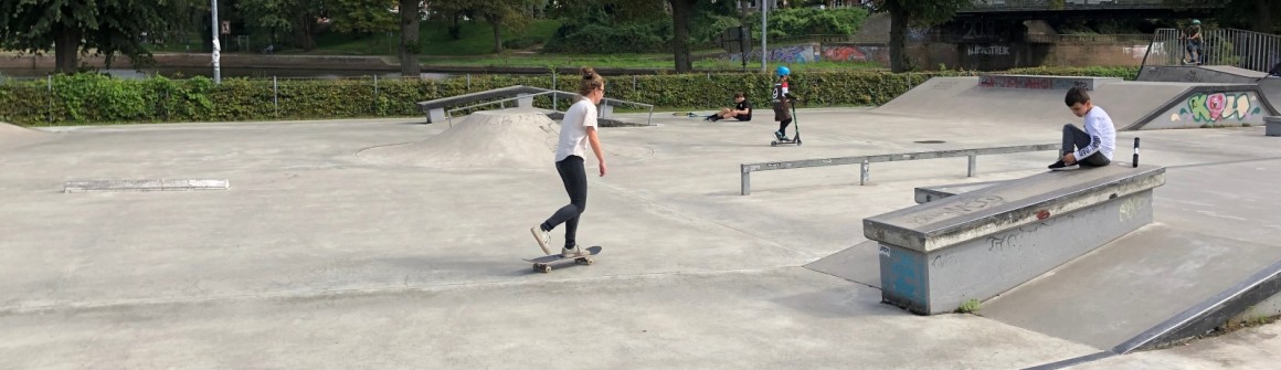 Gap Curbs, Schwebende Bänke, Quarterhips und Flatrails: Menschen, die ohne Bretter unter den Füßen durchs Leben gehen, verstehen hier nur Bahnhof. Alle Skatende aber wissen, was sich hinter diesen Vokabeln verbirgt. Für sie – und für Inlinende und BMX Fahrer:innen - hat der Bereich Stadtgrün und Verkehr von grün auf grau umgesattelt und die verschiedenen Skateparks in der Stadt eingerichtet. Und wunschgemäß betoniert.