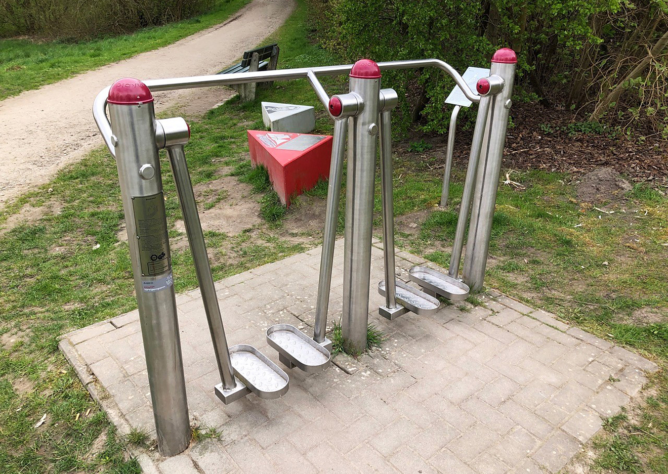 Das Prinzip, auf dem Sportgeräte wie der Stepper basieren, kennt man vom Partnerexponat Möbiusband. Dieses wird in der Mechanik gerne als Riemenantrieb genutzt, weil es eine gleichmäßige Abnutzung garantiert. So ist das Möbiusband, das diese Antriebstechnik darstellt, eine zweidimensionale Fläche, die nur eine Seite hat. Das Band, das diese gleichmäßige Antriebstechnik des Steppers realisiert, ist im Prinzip eine verdrehte Acht. Die Phänomene von physikalischem Antrieb und sportlicher Aktivität werden hier miteinander verbunden.