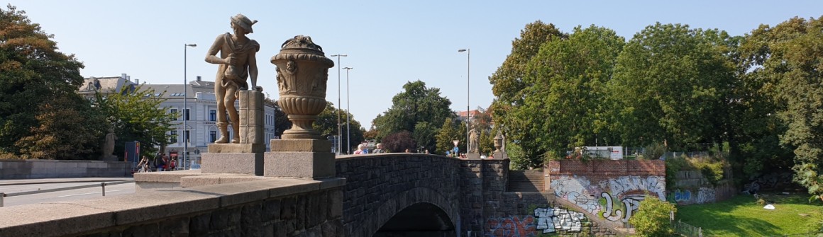 Heute stehen auf der Puppenbrücke nicht mehr die Originale aus Sandstein, sondern Nachbildungen aus Kunststein. Die Originale wurden zum Schutz vor schädlichen Umwelteinflüssen in das St. - Annen - Museum gebracht.