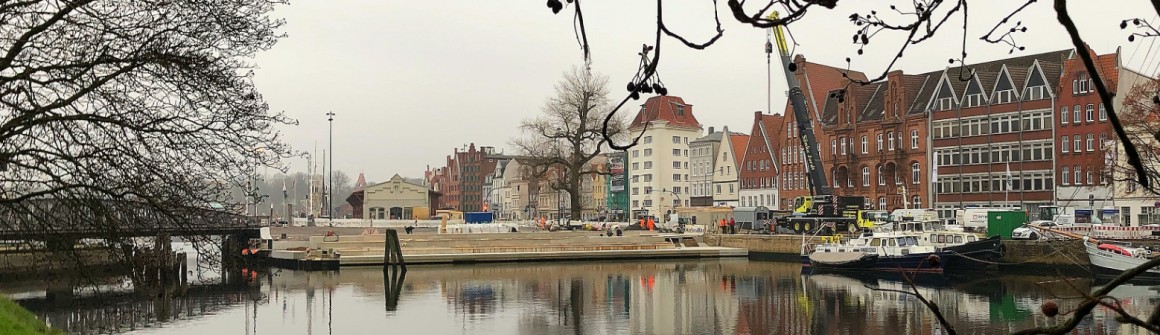 Hintergrund: Nachdem die eigentlich als erster Bauabschnitt geplante Neugestaltung der Straße An der Untertrave zwischen Holstentor und Drehbrückenplatz aufgrund des Bürgerentscheids im Dezember 2016 nicht umgesetzt werden konnte, gelang es der Stadt trotzdem, die Fördergeber von der für Lübeck bedeutenden Baumaßnahme der ursprünglich als 2. Bauabschnitt geplanten Umgestaltung vom Drehbrückenplatz bis Große Alte Fähre zu überzeugen. Im August 2017 wurde mit der Neugestaltung begonnen.