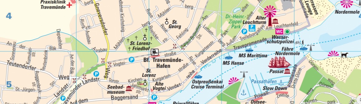 Einen Stadtplan zu Travemündes Innenstadt mit Umgebung finden Sie hier.